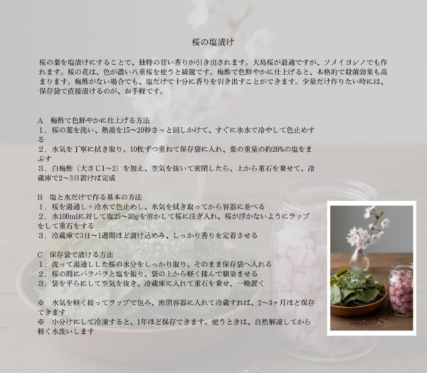 サクラの葉と花の塩漬けは、家庭でも簡単に作れます