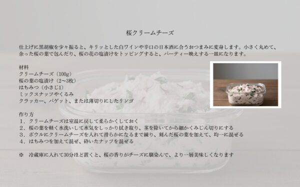 チーズのコクと桜の香りが絶妙にマッチした、白ワインや日本酒に合う肴になります