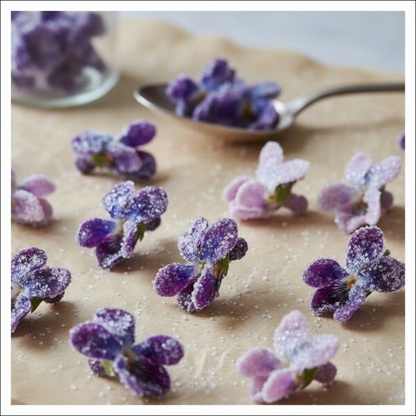スミレの砂糖漬けは、そのままつまむほか、