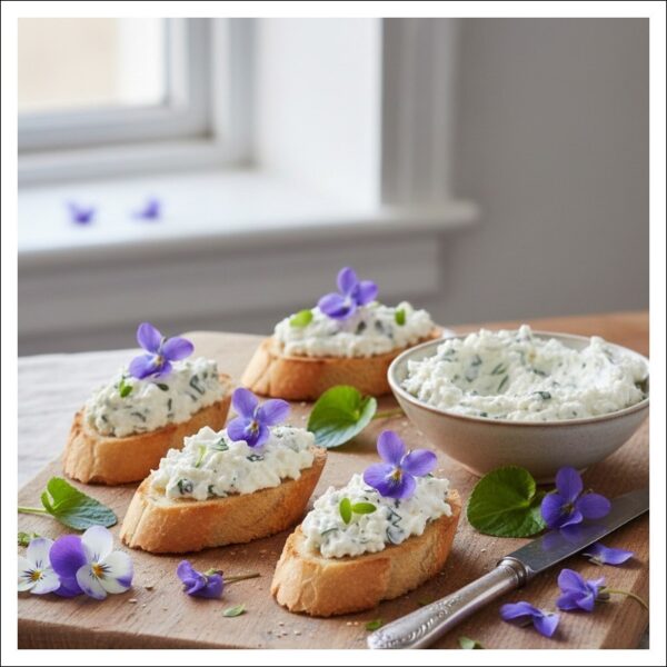 スミレのチーズディップを使ったカナッペ
